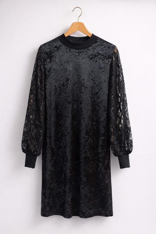 تنه ، مخمل کره رنگ مشکی ، دست گیپور پولک دوزی