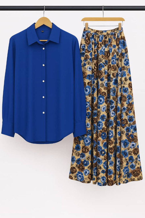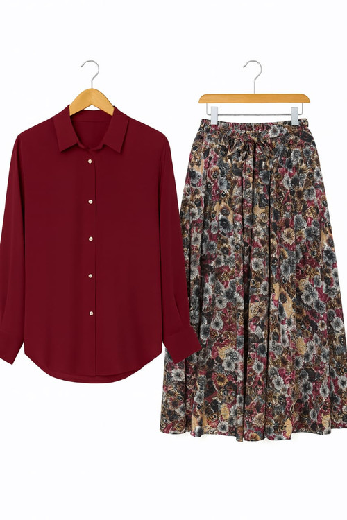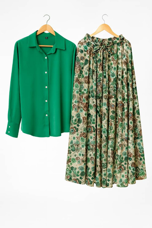 ست دوتیکه شومیز دامن گلدار در 4 رنگ